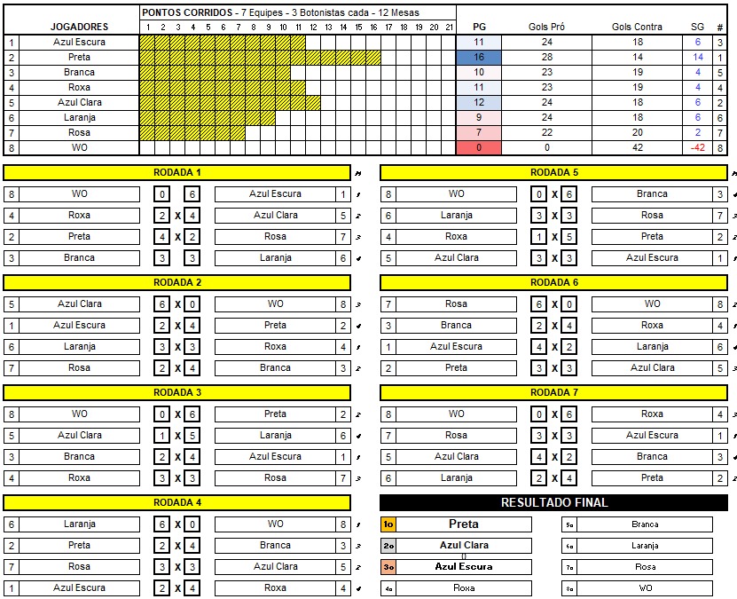 A grande campeã foi a equipe preta formada pela Helena, o Gabi e o Nicholas. Confira na tabela placares e a classificação final.