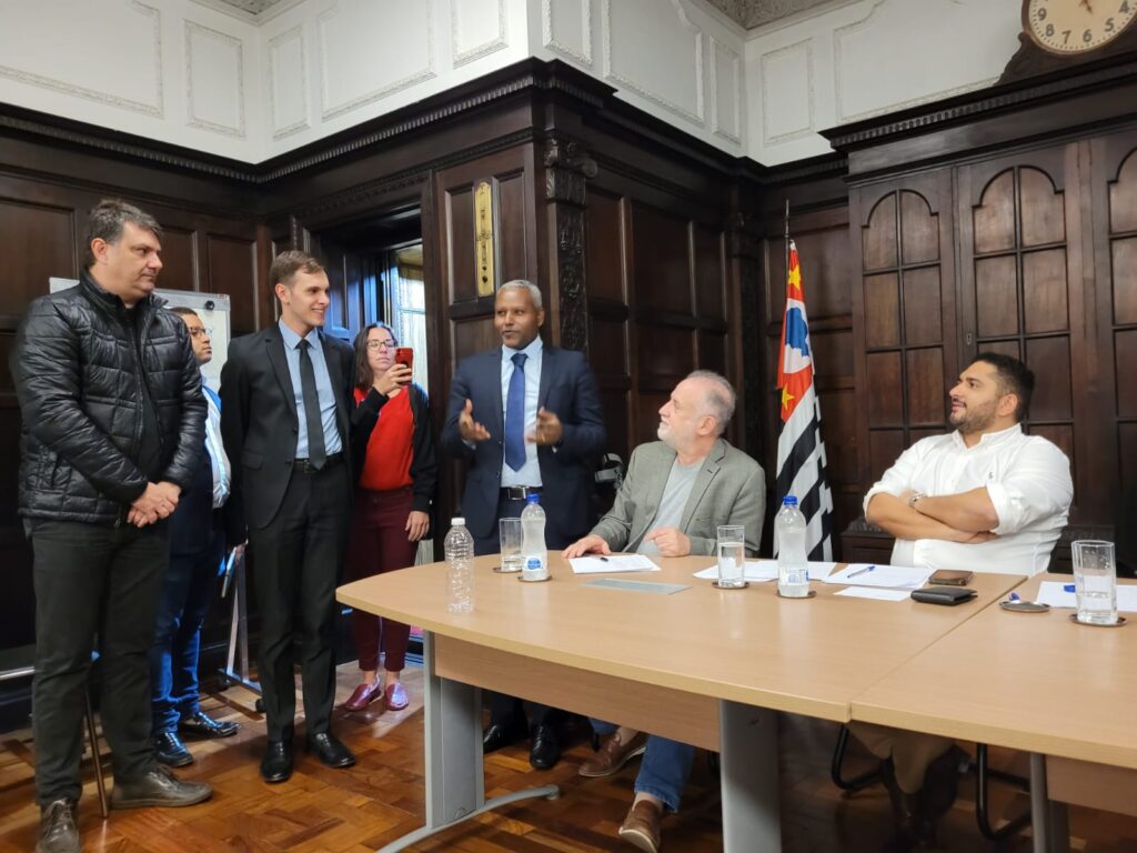 A Federação Paulista de Futebol de Mesa esteve presente na SELJ – Secretaria de Lazer Esportes e Juventude do estado de São Paulo, a convite do nosso secretário estadual Thiago Milhin, presentes também da SEME – Secretaria Municipal de Esportes o secretário municipal Carlos Augusto Manoel Vianna (Cacá), o secretário da ASEMESP – Secretarias de Esporte do Estado de São Paulo, Mauzler Paulinetti, o presidente da SEADESP – Sindicato das Entidades de Administração do Desporto no Estado de São Paulo, Sergio Valencia e diversas pessoas envolvidas direta e indiretamente na área esportiva.