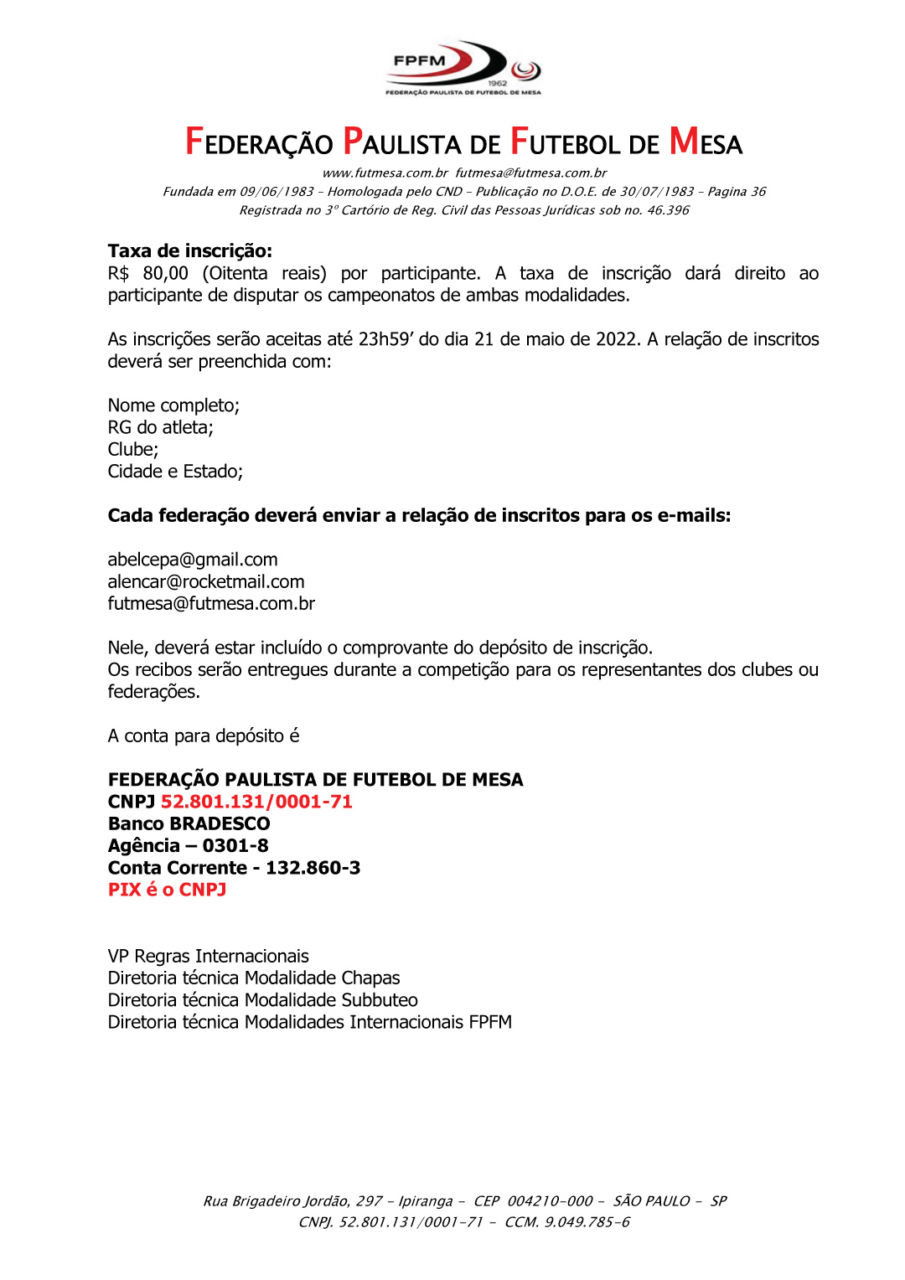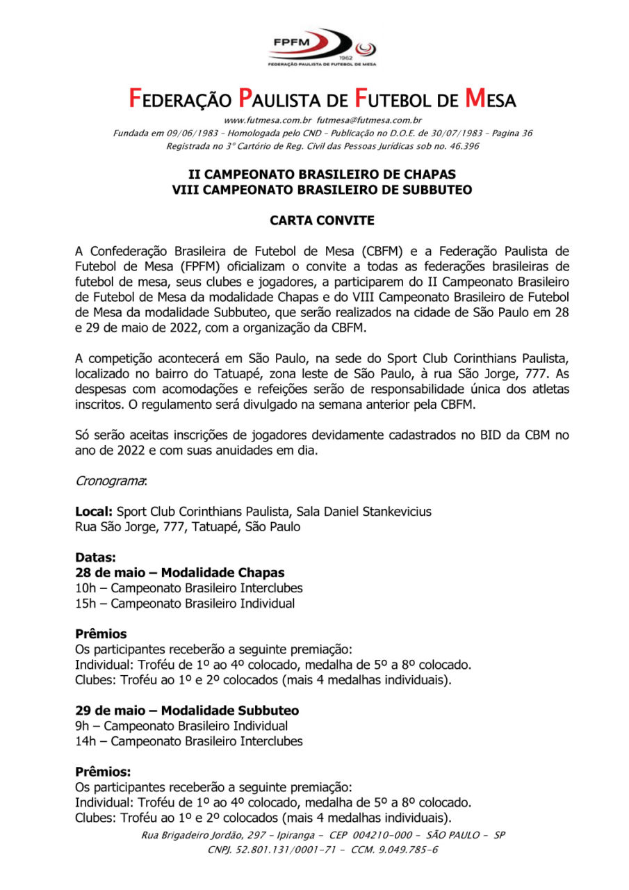 Carta Convite Subbuteo-Chapas