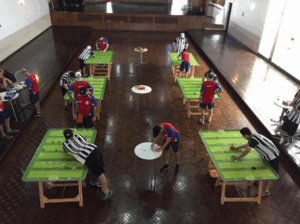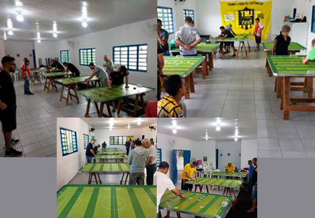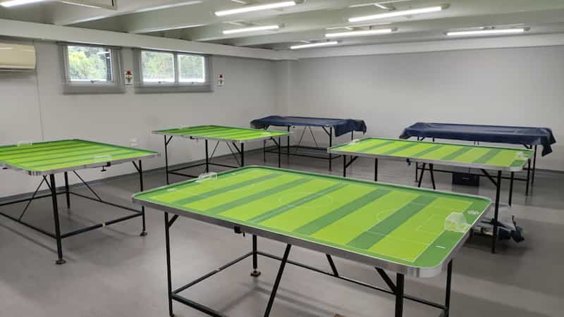 4 Mesas de Subbuteo GOAL Sports com Campos GOAL Sports e Subbuteo Brazilis e Traves GOAL Sports.