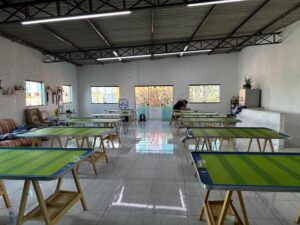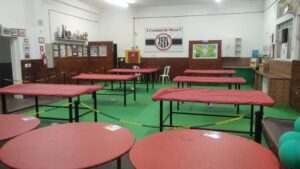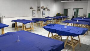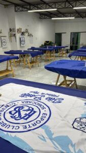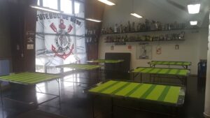 Sala com 2 ar condicionado, álcool em gel na entrada. Sanitários e bebedouro na parte externa. Espaço com aproximadamente 80 metros quadrados.