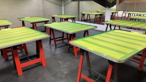 08 mesas oliver personalizadas montadas com cavaletes de ferro (12 toques e Dadidnho).