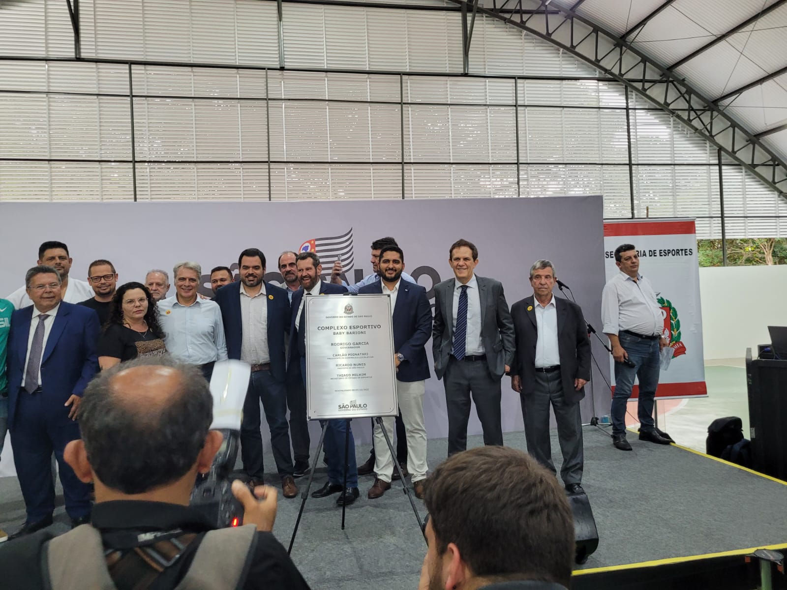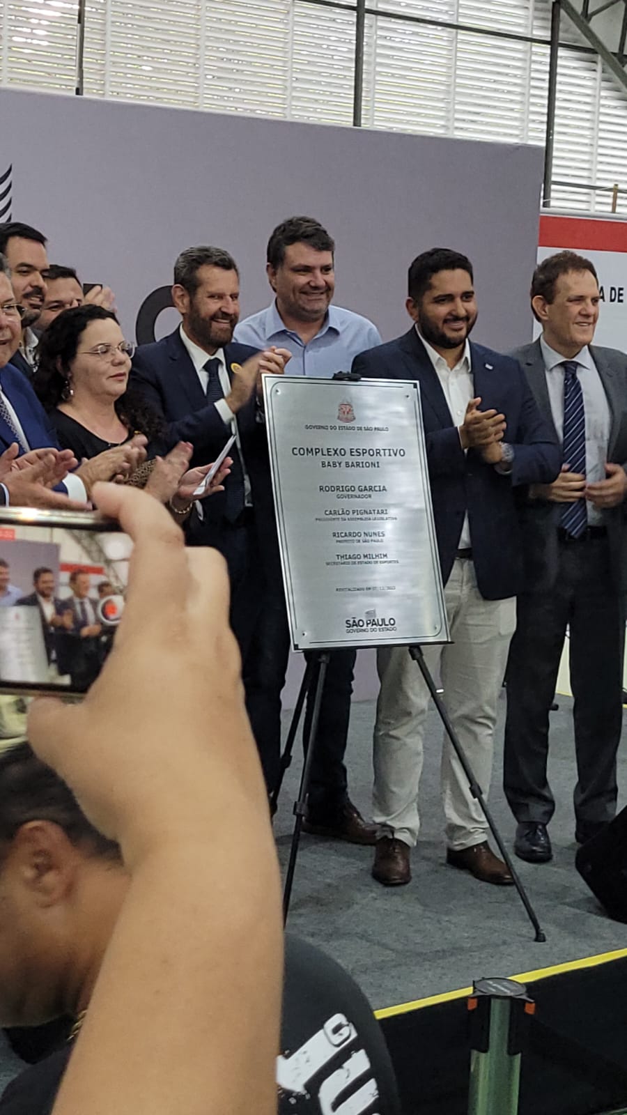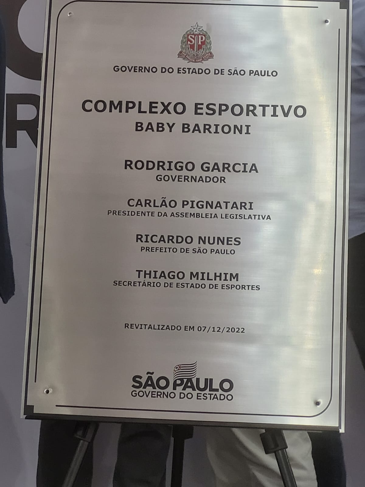 A Federação Paulista esteve hoje presente a cerimônia de entrega das obras do Conjunto Esportivo Baby Barioni representada pelo diretor de futebol de mesa da S. E. Palmeiras e futuro Vice Presidente da Federação o senhor Sérgio Galvão Valente.