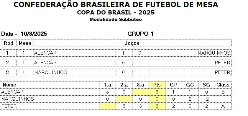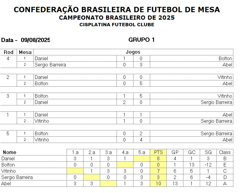 Distribuídos em três grupos de 3 atletas e um de quatro, Ao apito final, o placar de 4 a 1 corou outra brilhante campanha do atleta alvirrubro, que conquista assim o bicampeonato e leva para casa seu segundo troféu de campeão nacional neste ano de 2025.