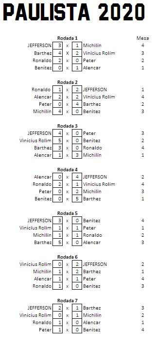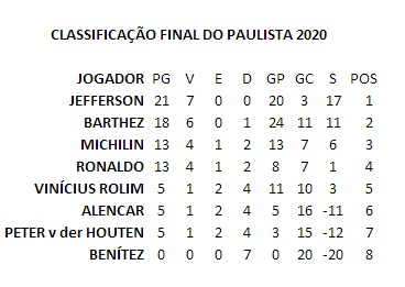 Com sete vitórias em sete partidas, o palmeirense Jefferson conquistou na tarde do sábado (5/3) o Paulista de 2020. O campeonato foi realizado no Corinthians e contou com 8 participantes.