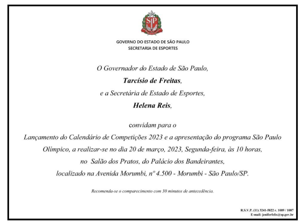 O Governador do Estado Tarcísio de Freitas esteve presenta juntamente com a secretária estadual de esportes a Coronel Helena Reis, o secretário do Município de São Paulo Carlos Augusto Manoel Vianna ou simplesmente Caca, além de diversos prefeitos de cidades do estado e muitos deputados.