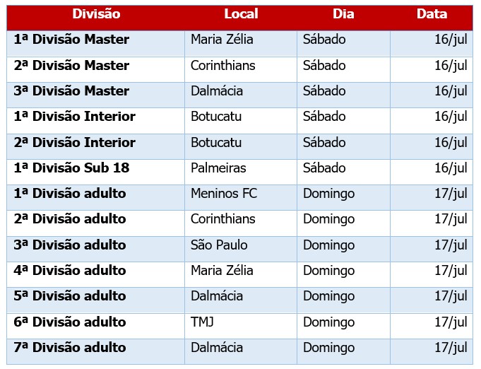 Estamos divulgando o ranking, o que pode ser conferido nos arquivos do site, as divisões aguardam as inscrições para duas formações.