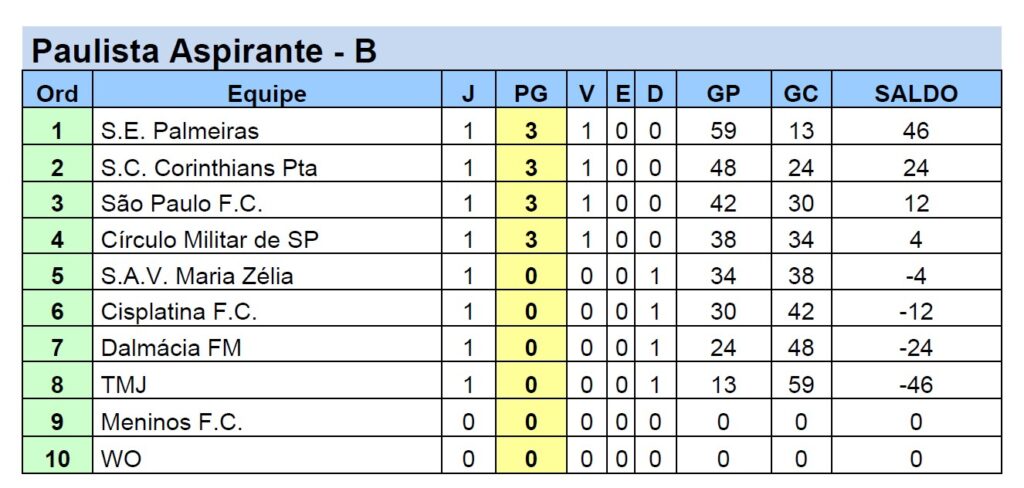 A classificação esta assim, lembrando que o Meninos F.C. ainda não estreou: