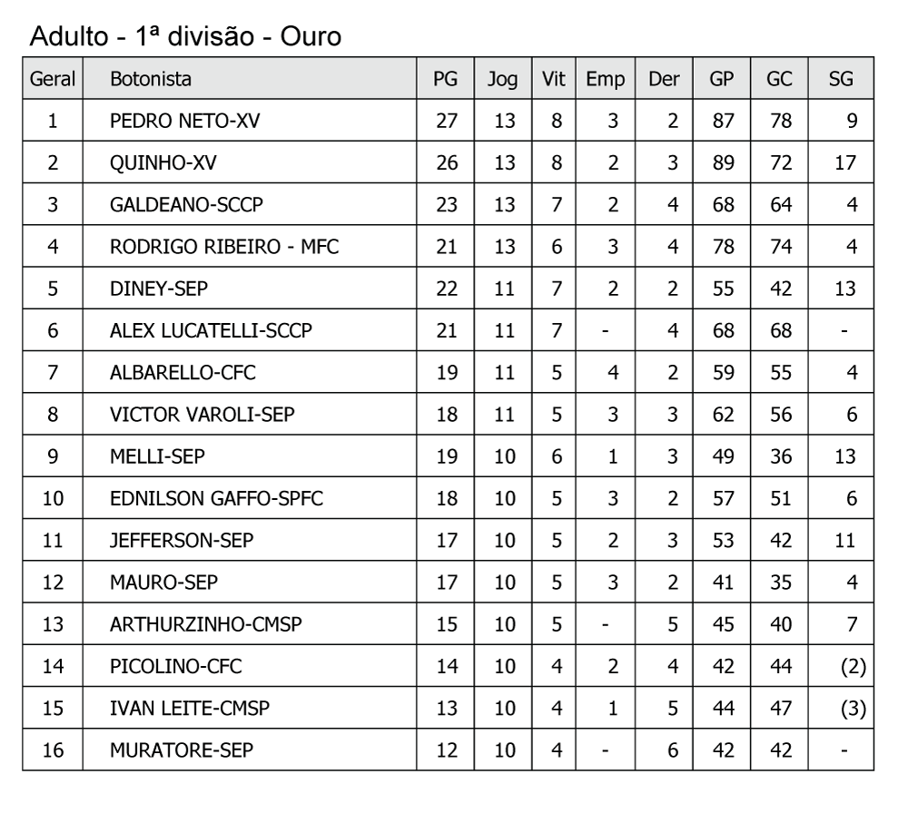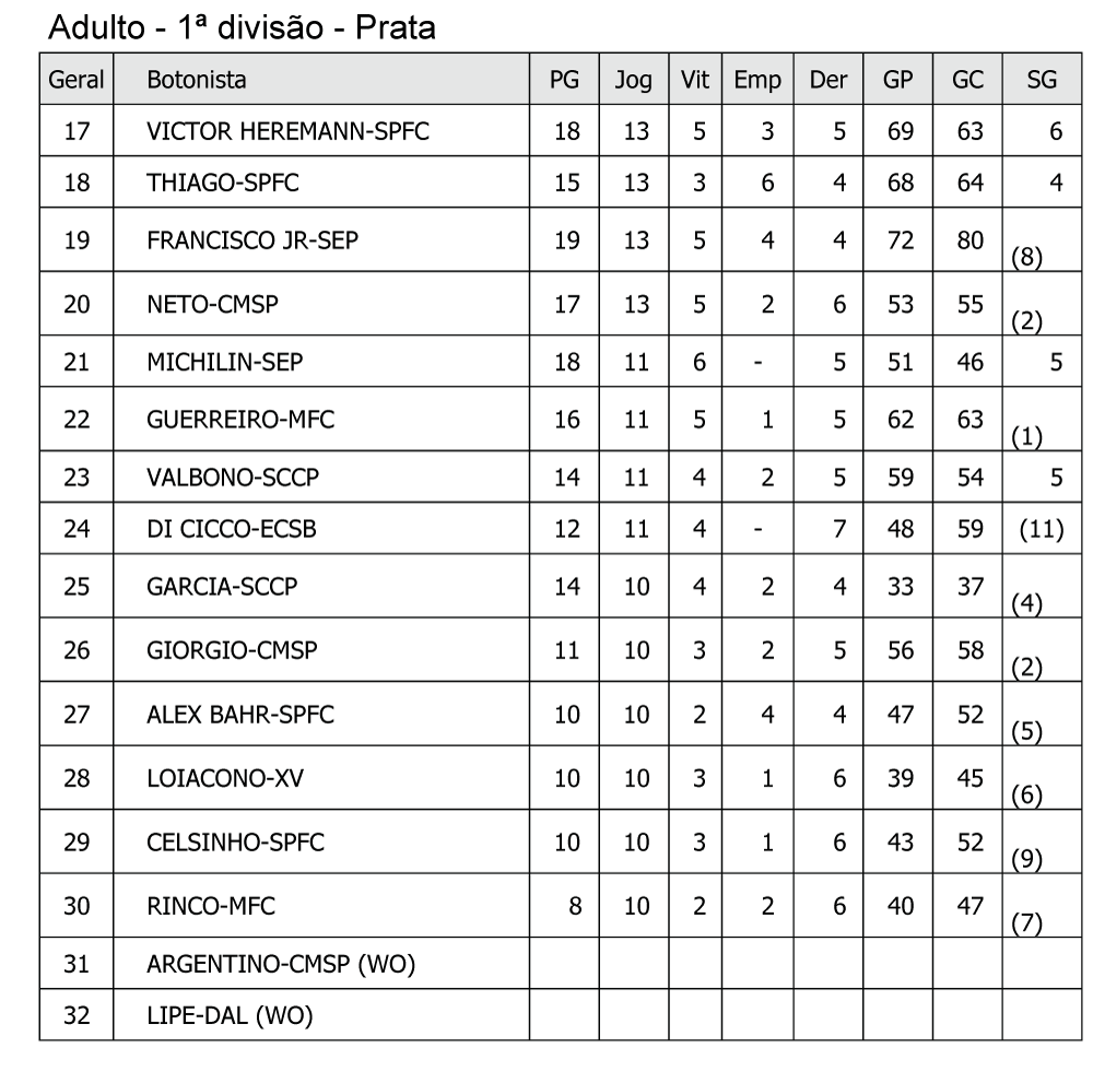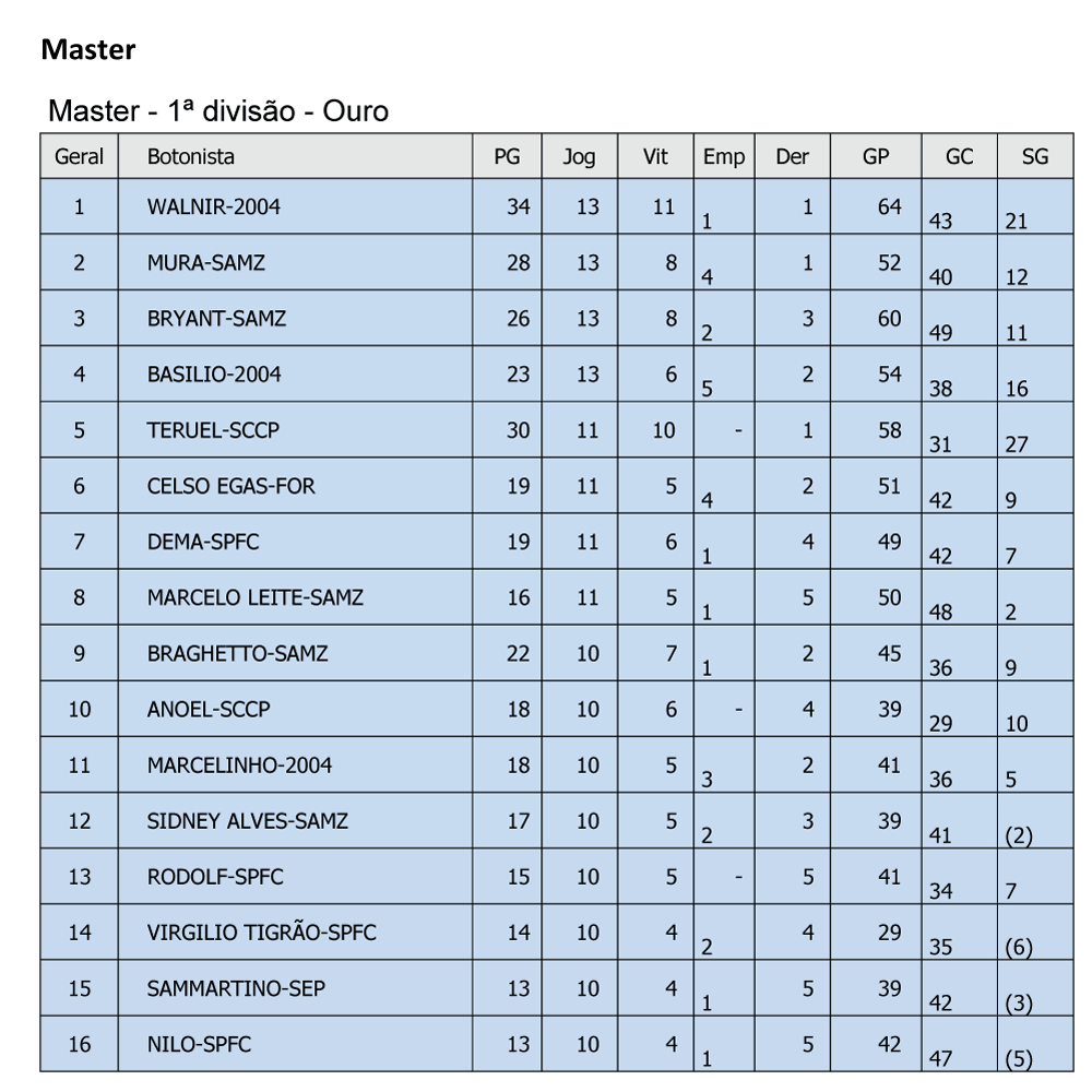 Neste domingo 24 de setembro com a mesma dedicação de ontem dia 23 da equipe que compõe a organização deste evento, terminamos o dia com todas as partidas transcorrendo com tranquilidade apesar do fortíssimo calor, problemas na rodovia e outras situações que enfrentamos também devido as intempéries, mais uma vez agradecemos a todos os botonistas pela dedicação e compreensão pois estamos em busca da qualidade ideal, ainda temos muito a fazer, confira como foi o domingo, a classificação da prata do máster pode não estar correta mas será devidamente corrigida pela diretoria técnica. Confiram: