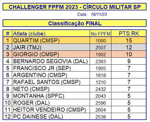 • América Futebol Clube Associação Base Forte Bloco Recreativo e Esportivo do 'R' CEPE Clube 2004 Círculo Militar de São Paulo Cisplatina Futebol Clube Clube Ituano de Esportes Dalmácia Futmesa Esporte Clube São Bento Grêmio Desportivo e Recreativo 7 de Setembro Liga Litoral Norte e Vale do Paraíba de Futebol de Mesa