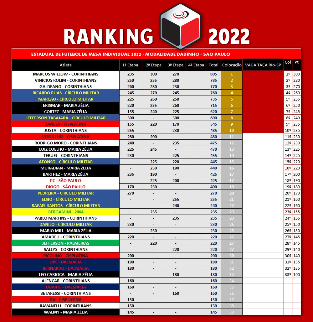 Ranking Dadinho 2022