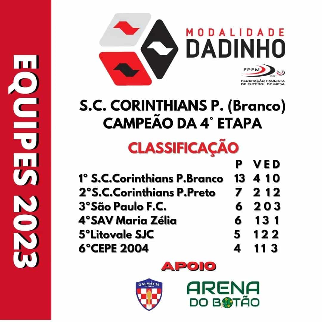 Pelo equipes, a Equipe do Corinthians Branco ganhou mais uma etapa, sagrando-se finalista ao lado do CEPE 2004.